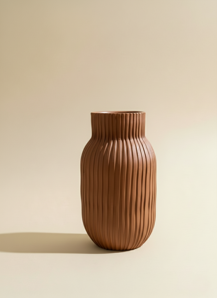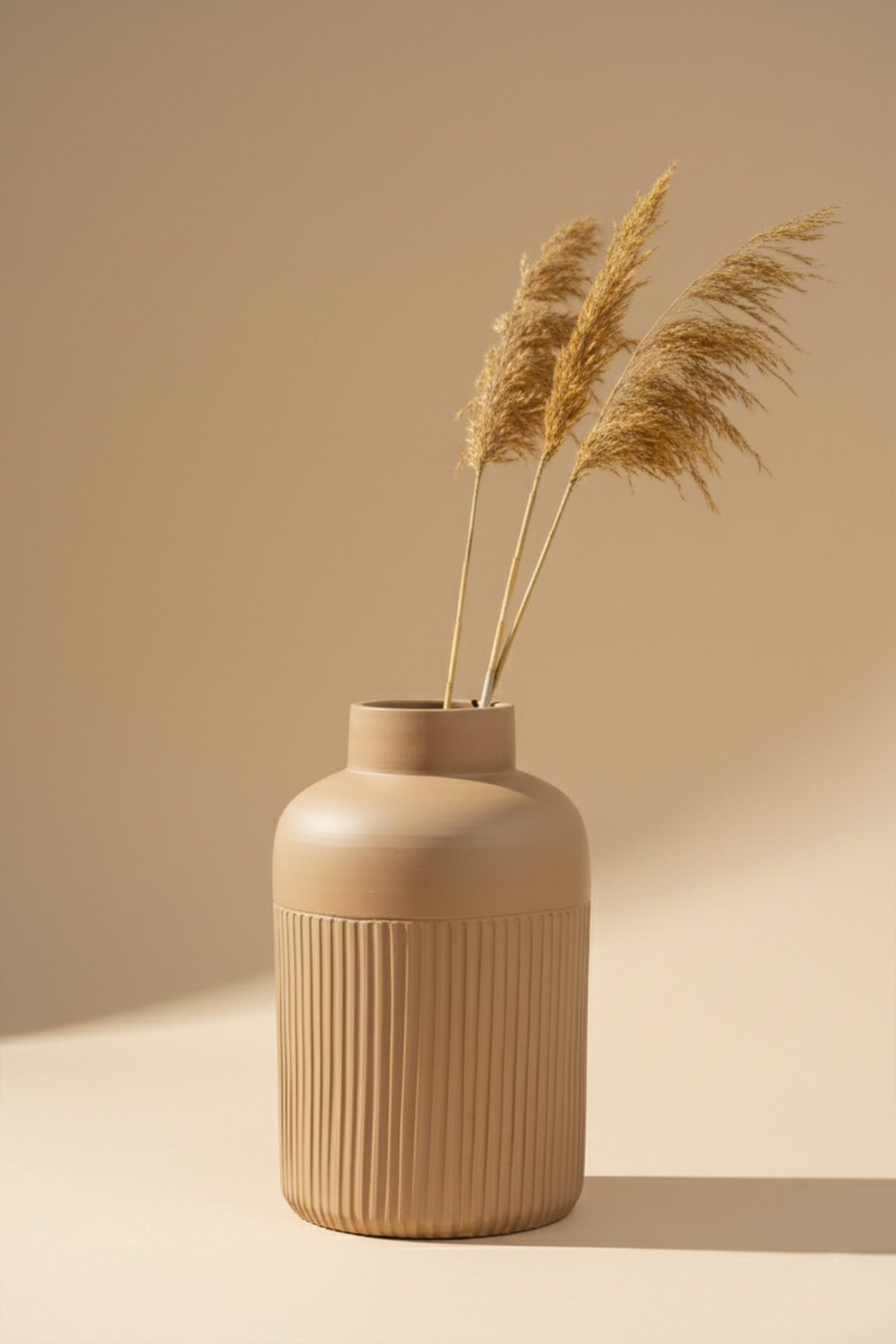 Un vase au design élancé et minimaliste, façonné à la main pour sublimer la simplicité. Ses lignes équilibrées et sa finition satinée en font une pièce maîtresse idéale pour accueillir de grandes tiges séchées ou des compositions naturelles.